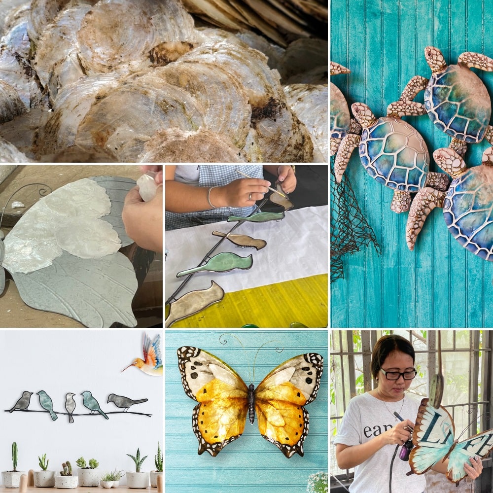 While the Gecko Lamp was the starting point, our product range has grown to include a variety of accessories that keep pace with trends in home design. Our wall decor, crafted using capiz oyster shells, is a prime example. The process begins with collecting and drying the shells, which are then carefully inlaid on a metal frame. Each piece is hand-painted, resulting in beautiful, one-of-a-kind items that add a unique touch to any space.