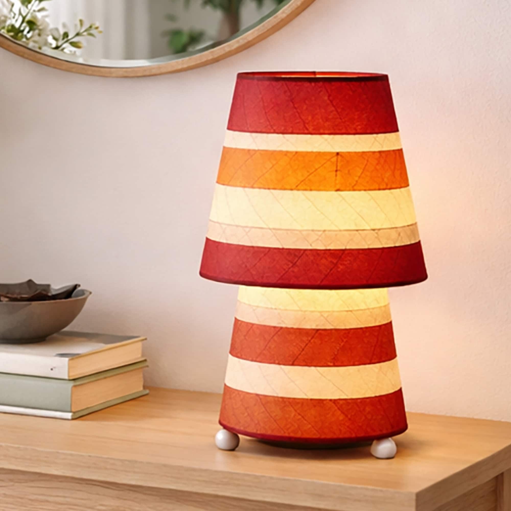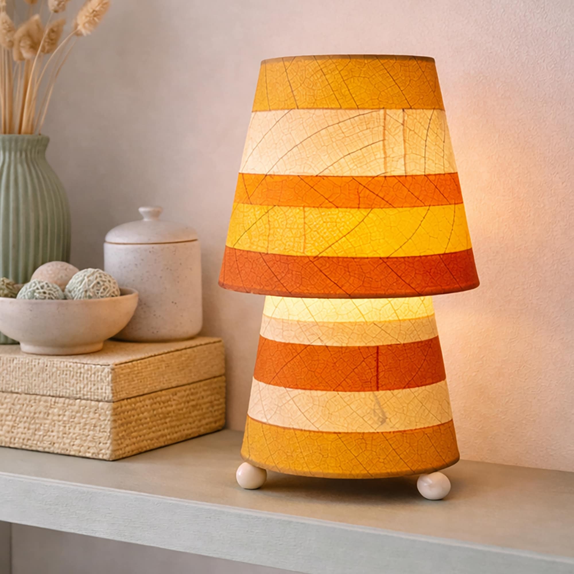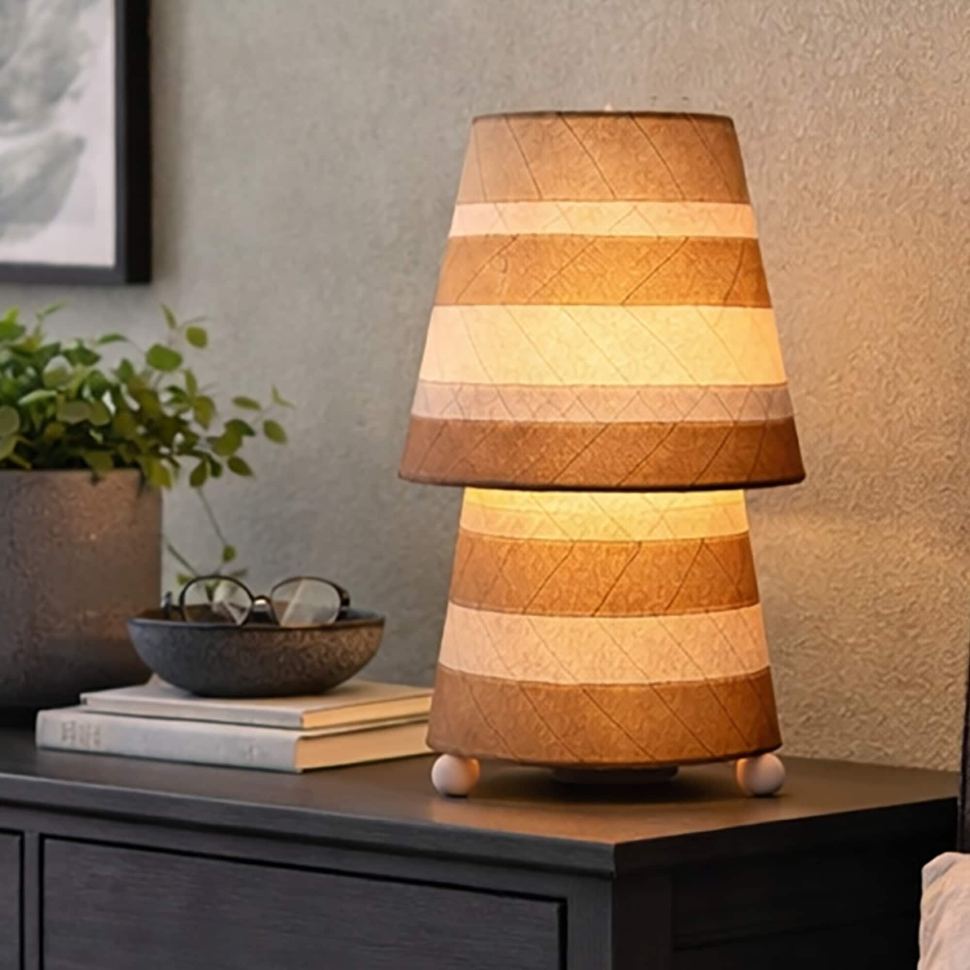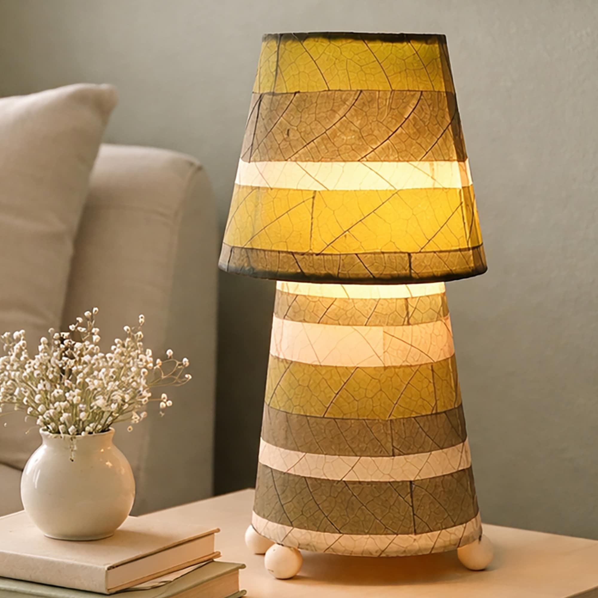 The Striped Tapered Table Lamp blends texture and restraint. Layered cocoa leaves create subtle movement, while the tapered form keeps the look clean and composed. It’s an easy way to add character without crowding the room.