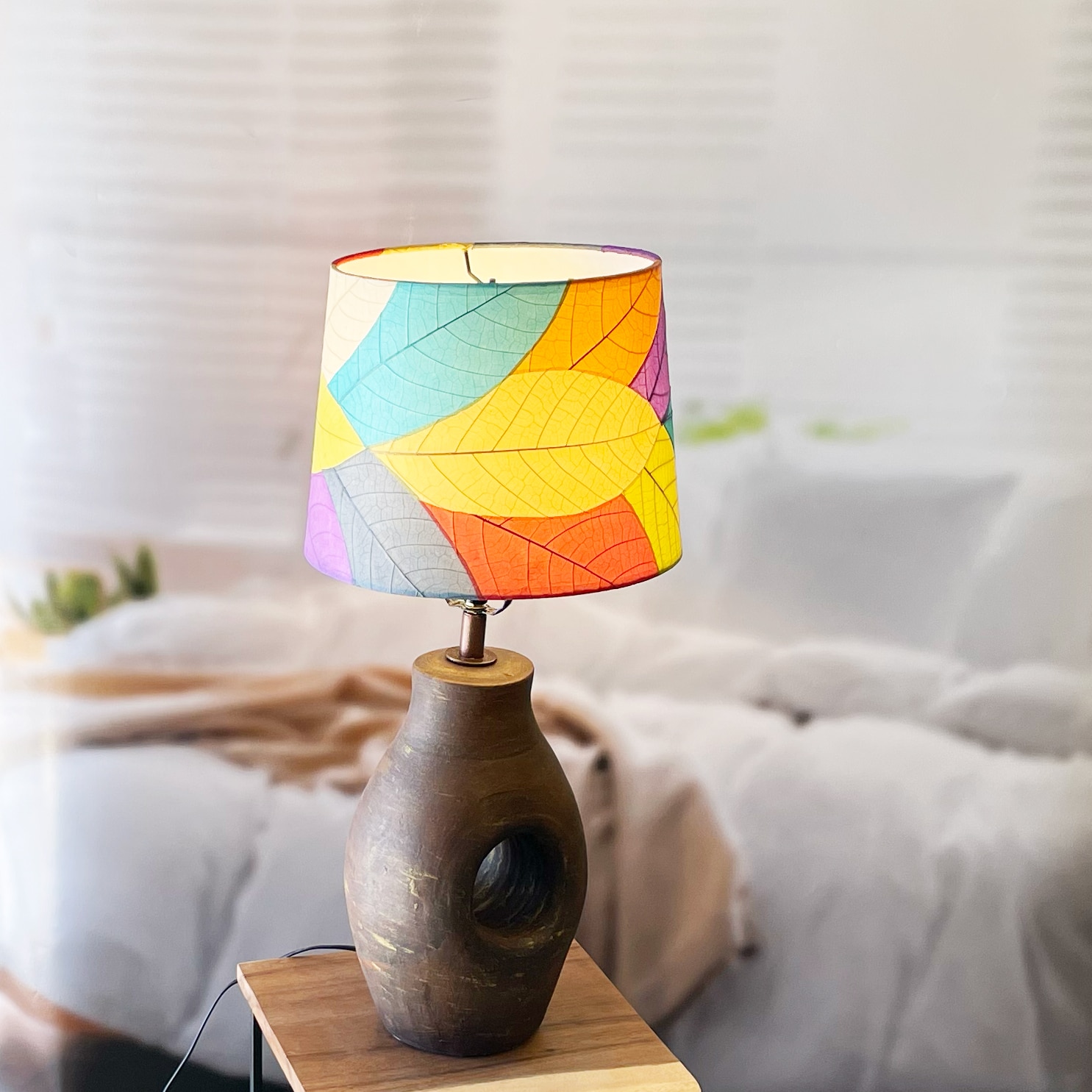 Some things never go out of style—like the warm, balanced glow of a perfectly crafted drum shade. The 12 Inch Tapered Drum Shade is a quiet statement piece that pairs modern simplicity with the timeless beauty of nature. Each shade is made from real cocoa leaves, their intricate veins preserved and hand-placed to form a naturally woven pattern that glows when lit.