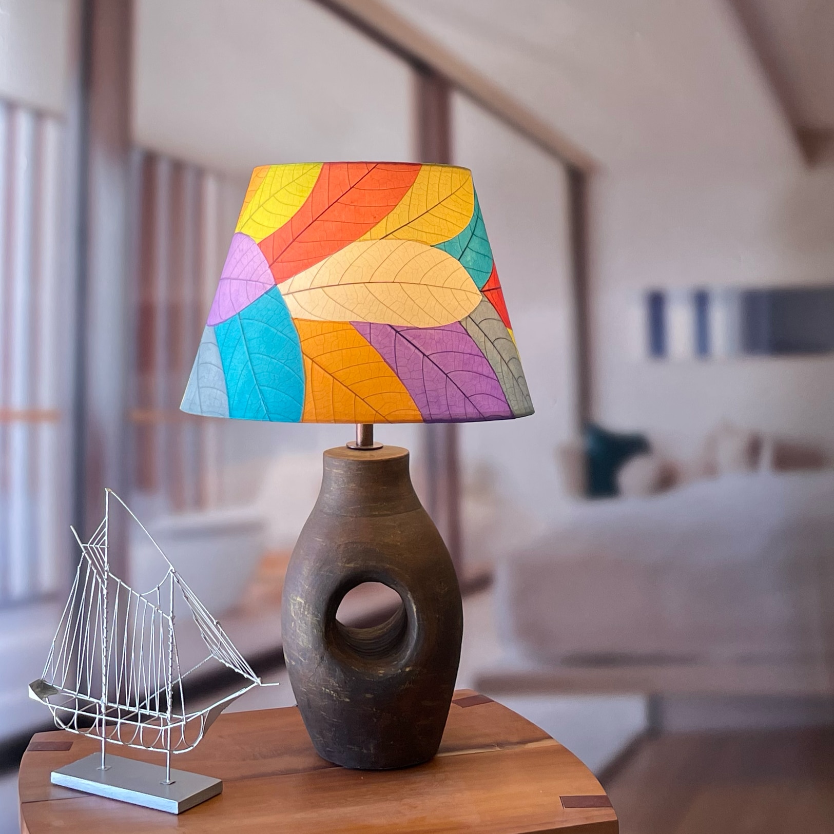 The 16 Inch British Drum Shade is where classic design meets natural beauty. With its narrow top and flared bottom, the silhouette reflects centuries of refinement—once found in libraries and parlors, now brought into modern homes with fresh intention. Its surface is crafted from real cocoa leaves, each one hand-placed to preserve its organic veins and shape, glowing softly when lit and becoming a quiet focal point in the room.