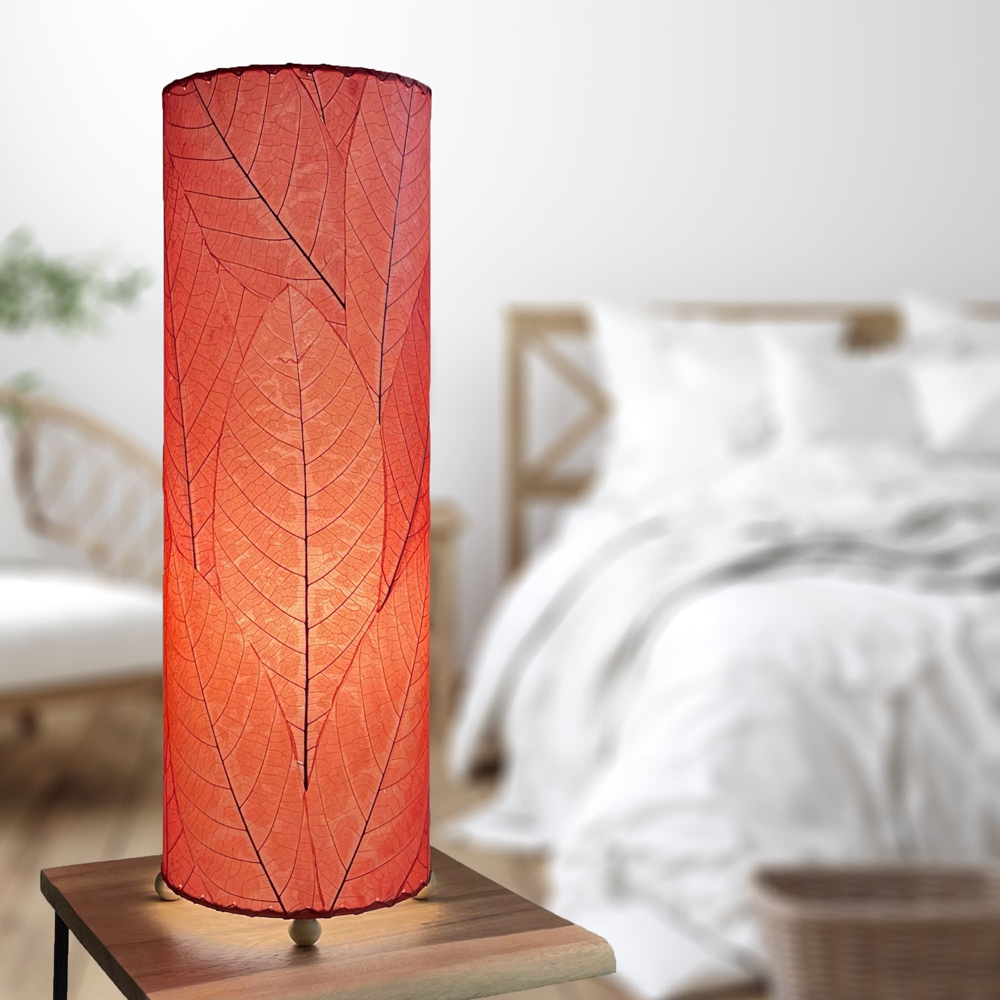 24 Inch Cocoa Leaf Cylinder Table Lamp Red