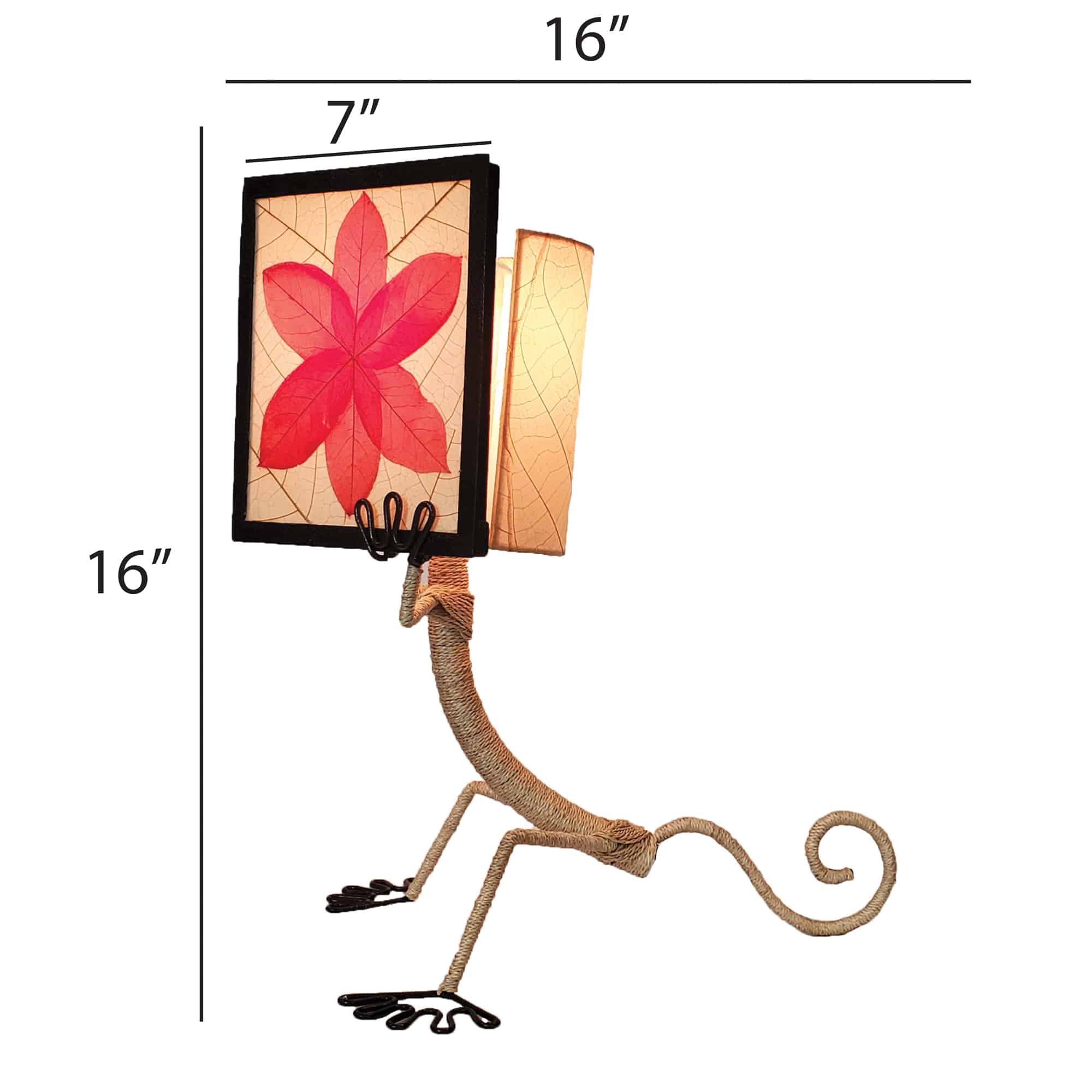 The Enlightened Gecko Table Lamp is pure personality—clever, curious, and completely charming. Caught mid-study, this lamp captures the playful energy of a lizard with its nose in a book. Its frame—crafted from wrought iron and wrapped in natural abaca—gives the gecko lifelike movement, while the lamp shade doubles as its reading material, glowing softly with fossilized leaves.