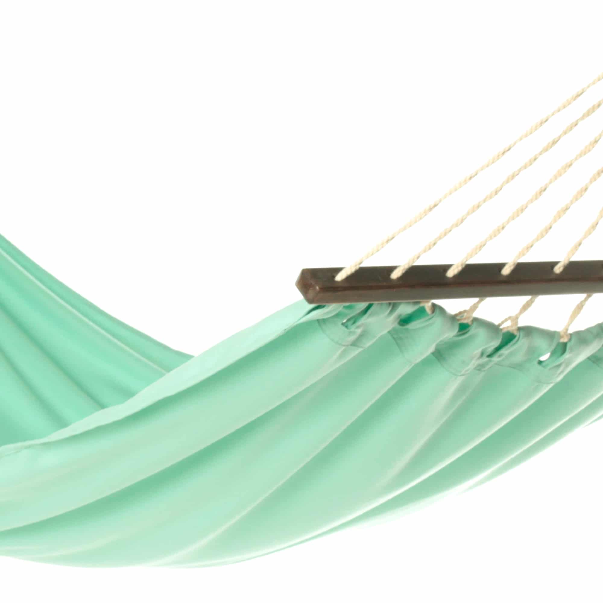 Hammock with wood bars for both indoor and outdoor use. Hanging hardware sold separately, hammock does not include hammock stand.
