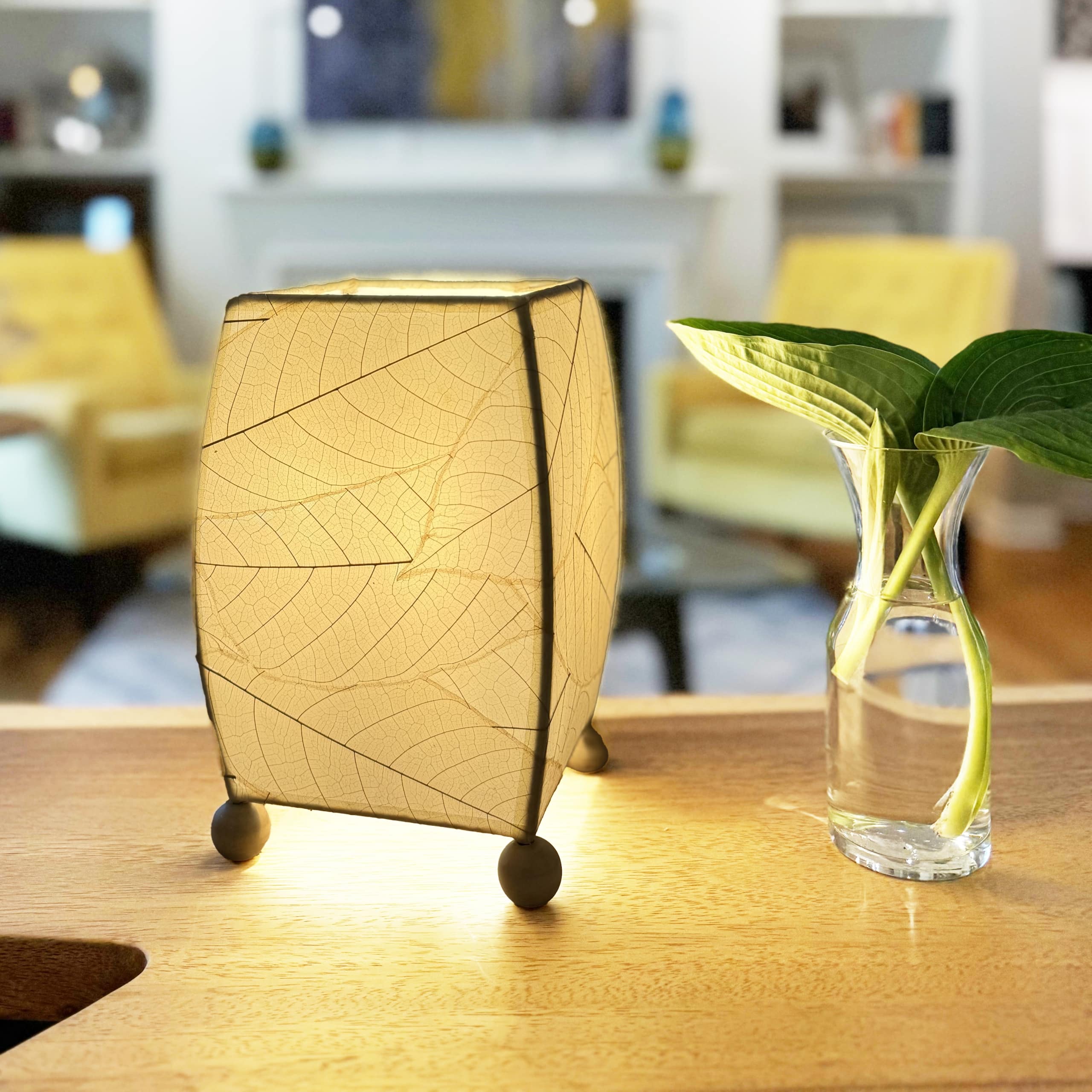 Mini Square Cocoa Leaf Table Lamp Natural