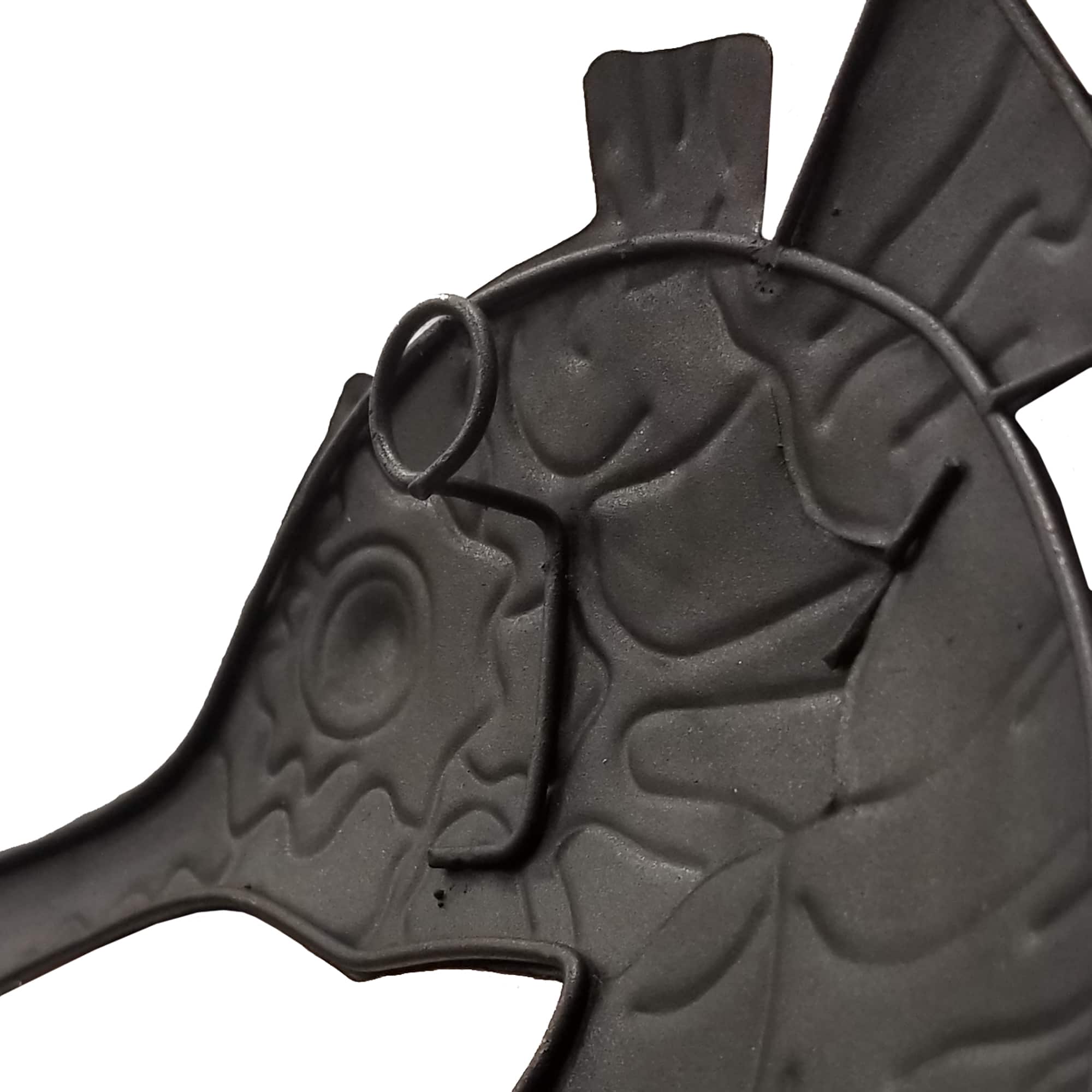 The basic frame of the Seahorse Wall Decoris created using tin, which is powder coated as a black finish. Capiz is an oyster shell and the primary purpose of the oyster is as a source of food. However, the by-product, the shell, can be used for decoration. Due to it being a natural material, the natural colors of the capiz can come through as tans and browns.