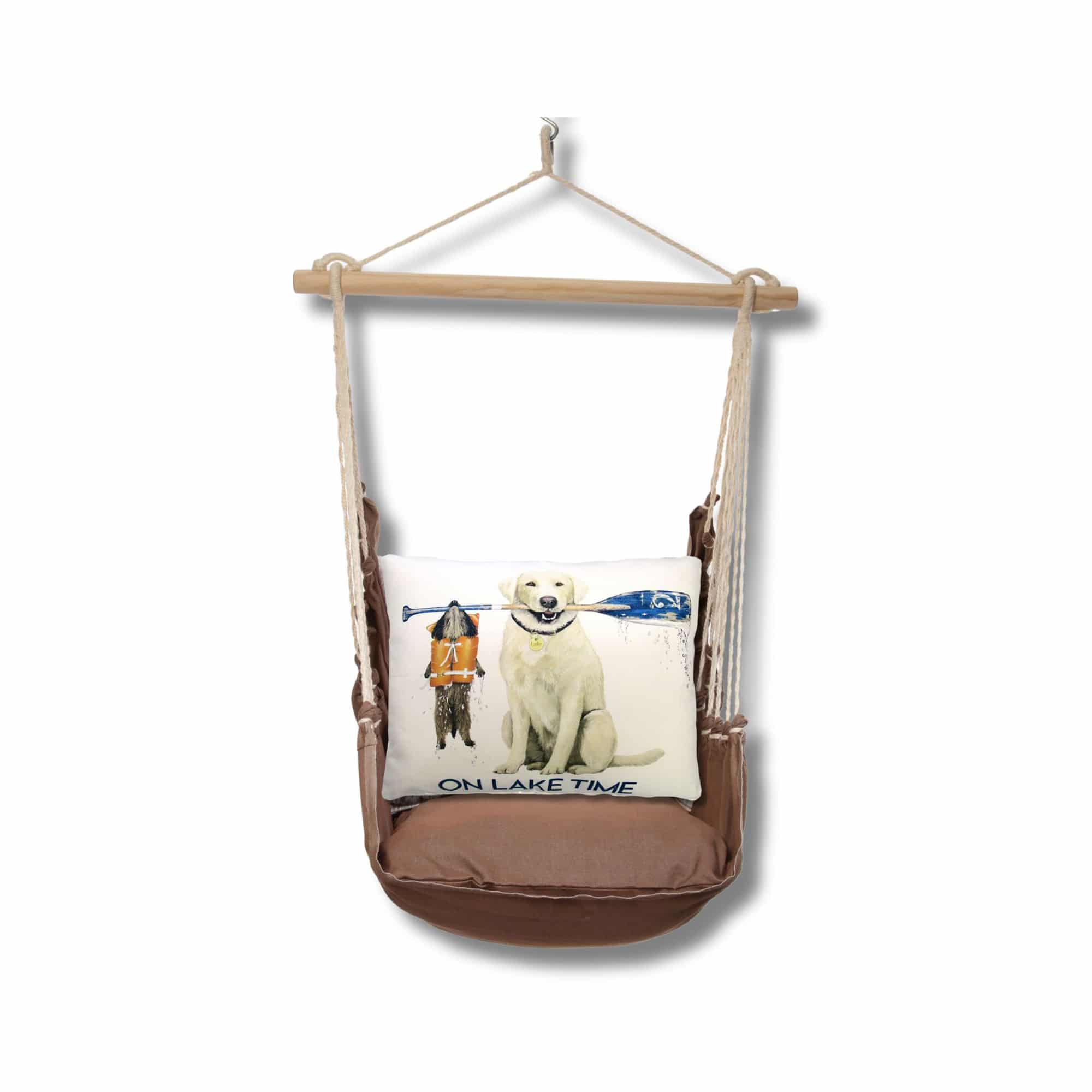 Envision a breezy corner of your yard where rich espresso-brown canvas invites daydreams and gentle conversation. A Lake Time cushion adds its own personality, turning the swing into functional art. Hand-sewn from Sundure fabric that feels like cotton yet resists fade, mildew, and sudden showers, each set is built for real life outside so you can linger without fussing over the weather. A smoothly finished hardwood bar keeps the seat open and balanced, while durable hanging ropes clip up in moments and fold flat for off-season storage. The four-piece kit arrives ready to relax: swing seat, overstuffed 24×24-inch seat pillow, 19×24-inch back pillow, and a matching tote for easy travel or winter stow-away. Machine-washable and mood-lifting, it’s the quickest way to add a touch of crafted comfort wherever you hang it.