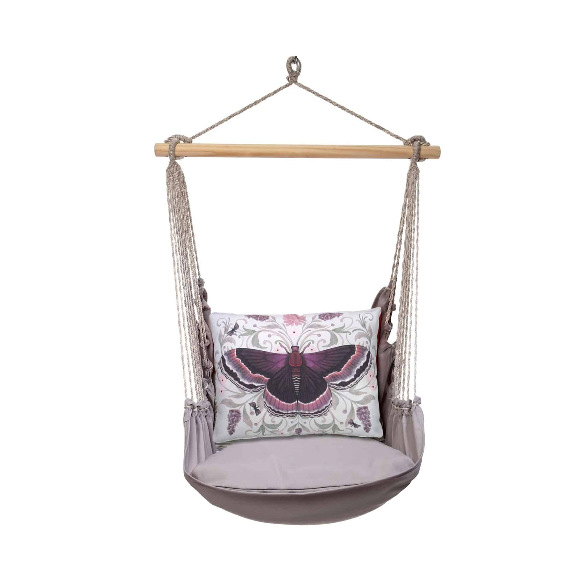 Picture a slow porch afternoon where gray solid frames every laugh and lazy sip of iced tea. A Mauve Butterfly cushion adds its own personality, turning the swing into functional art. Hand-sewn from Sundure fabric that feels like cotton yet resists fade, mildew, and sudden showers, each set is built for real life outside so you can linger without fussing over the weather. A smoothly finished hardwood bar keeps the seat open and balanced, while durable hanging ropes clip up in moments and fold flat for off-season storage. The four-piece kit arrives ready to relax: swing seat, overstuffed 24×24-inch seat pillow, 19×24-inch back pillow, and a matching tote for easy travel or winter stow-away. Machine-washable and mood-lifting, it’s the quickest way to add a touch of crafted comfort wherever you hang it.
