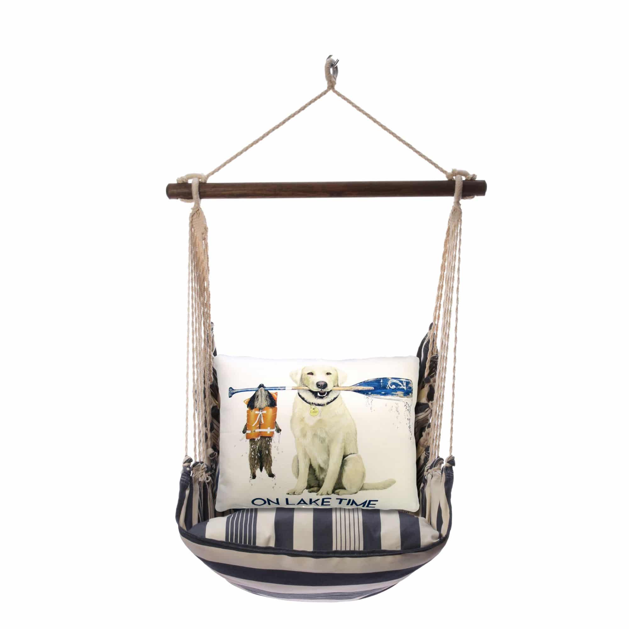 Picture a slow porch afternoon where marina stripe frames every laugh and lazy sip of iced tea. A Lake Time cushion adds its own personality, turning the swing into functional art. Hand-sewn from Sundure fabric that feels like cotton yet resists fade, mildew, and sudden showers, each set is built for real life outside so you can linger without fussing over the weather. A smoothly finished hardwood bar keeps the seat open and balanced, while durable hanging ropes clip up in moments and fold flat for off-season storage. The four-piece kit arrives ready to relax: swing seat, overstuffed 24×24-inch seat pillow, 19×24-inch back pillow, and a matching tote for easy travel or winter stow-away. Machine-washable and mood-lifting, it’s the quickest way to add a touch of crafted comfort wherever you hang it.