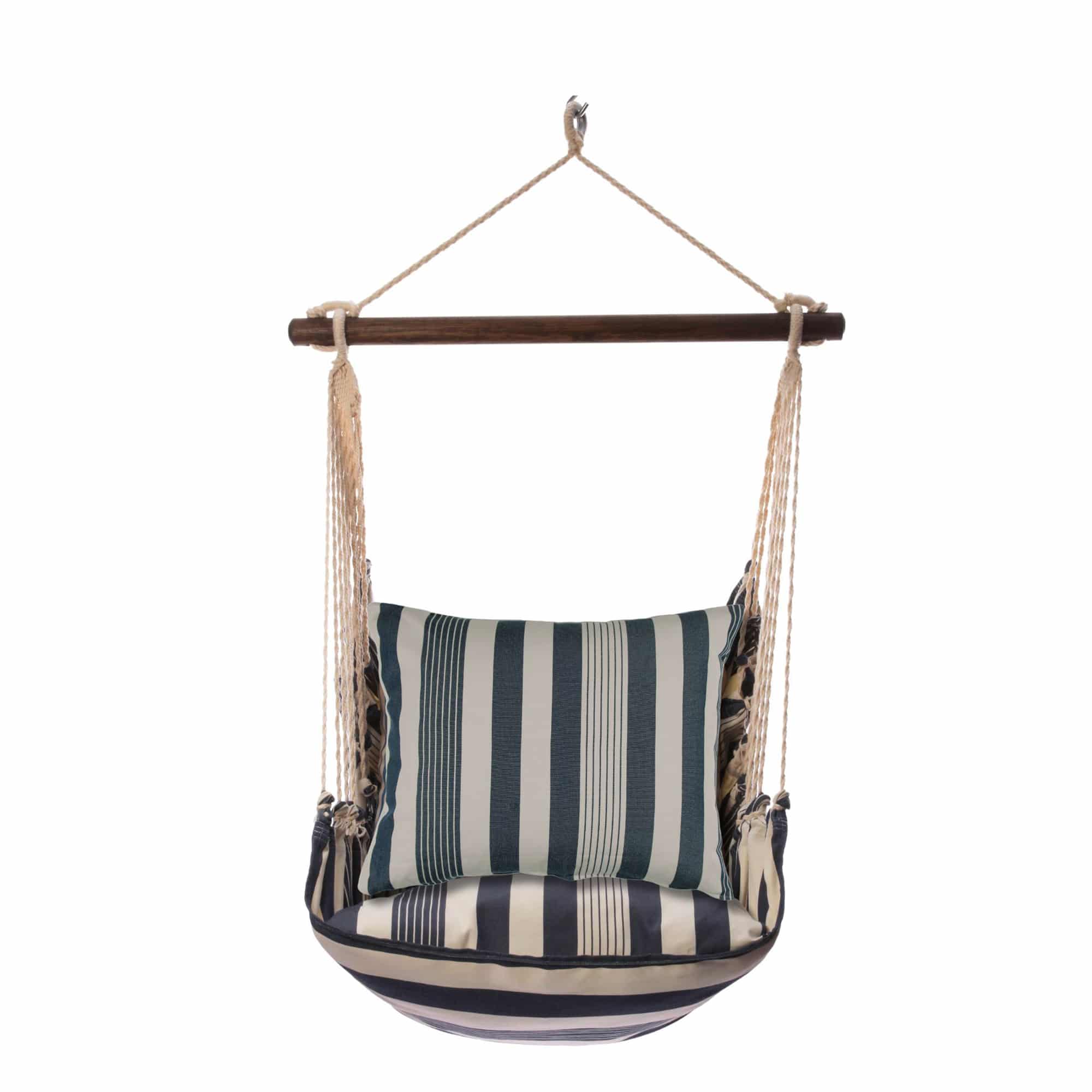Think of weekend mornings when marina stripe turns the porch into a private retreat. A Marina Stripe cushion adds its own personality, turning the swing into functional art. Hand-sewn from Sundure fabric that feels like cotton yet resists fade, mildew, and sudden showers, each set is built for real life outside so you can linger without fussing over the weather. A smoothly finished hardwood bar keeps the seat open and balanced, while durable hanging ropes clip up in moments and fold flat for off-season storage. The four-piece kit arrives ready to relax: swing seat, overstuffed 24×24-inch seat pillow, 19×24-inch back pillow, and a matching tote for easy travel or winter stow-away. Machine-washable and mood-lifting, it’s the quickest way to add a touch of crafted comfort wherever you hang it.