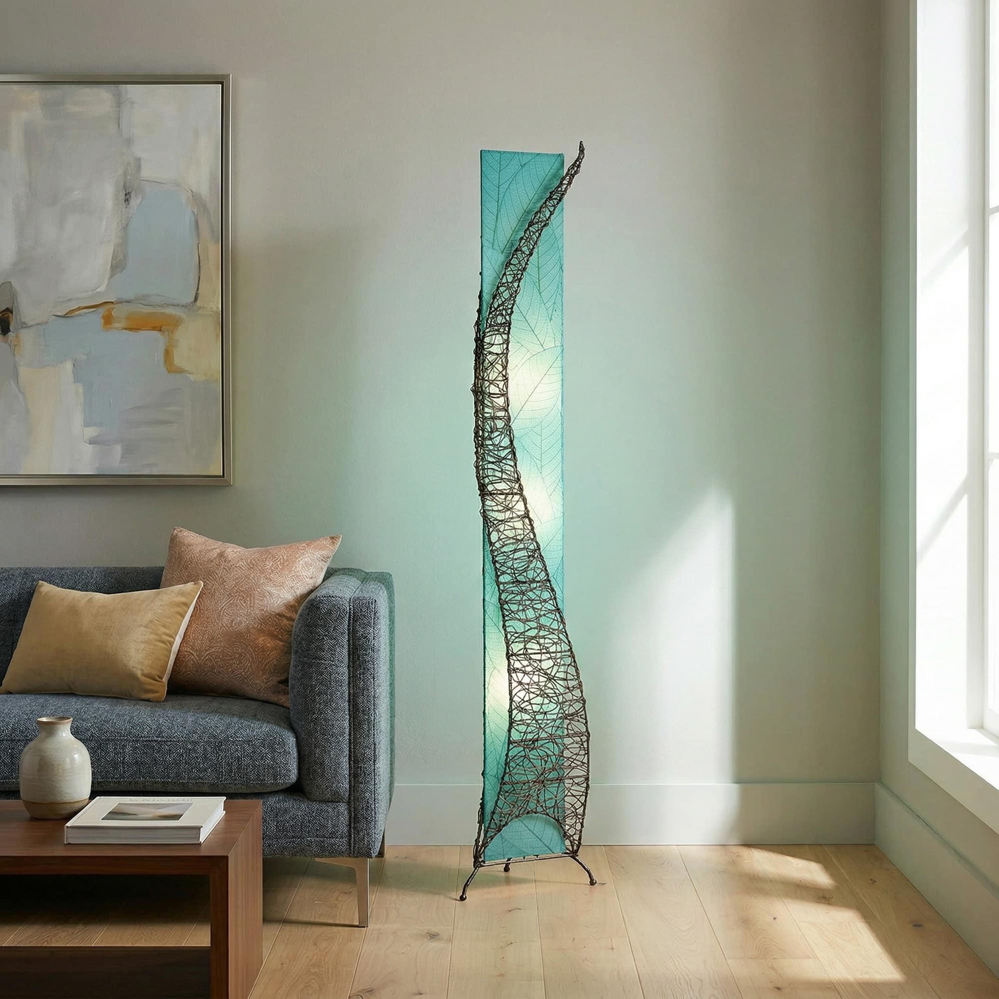 The Wings Giant Floor Lamp is designed to make an immediate impression. It shifts the mood of a room the moment it’s placed, bringing movement, light, and intention into the space. The sculptural frame is wrapped in a flowing lattice of nito vine, layered over real fossilized cocoa leaves that catch and soften the light in a way that feels alive rather than decorative.