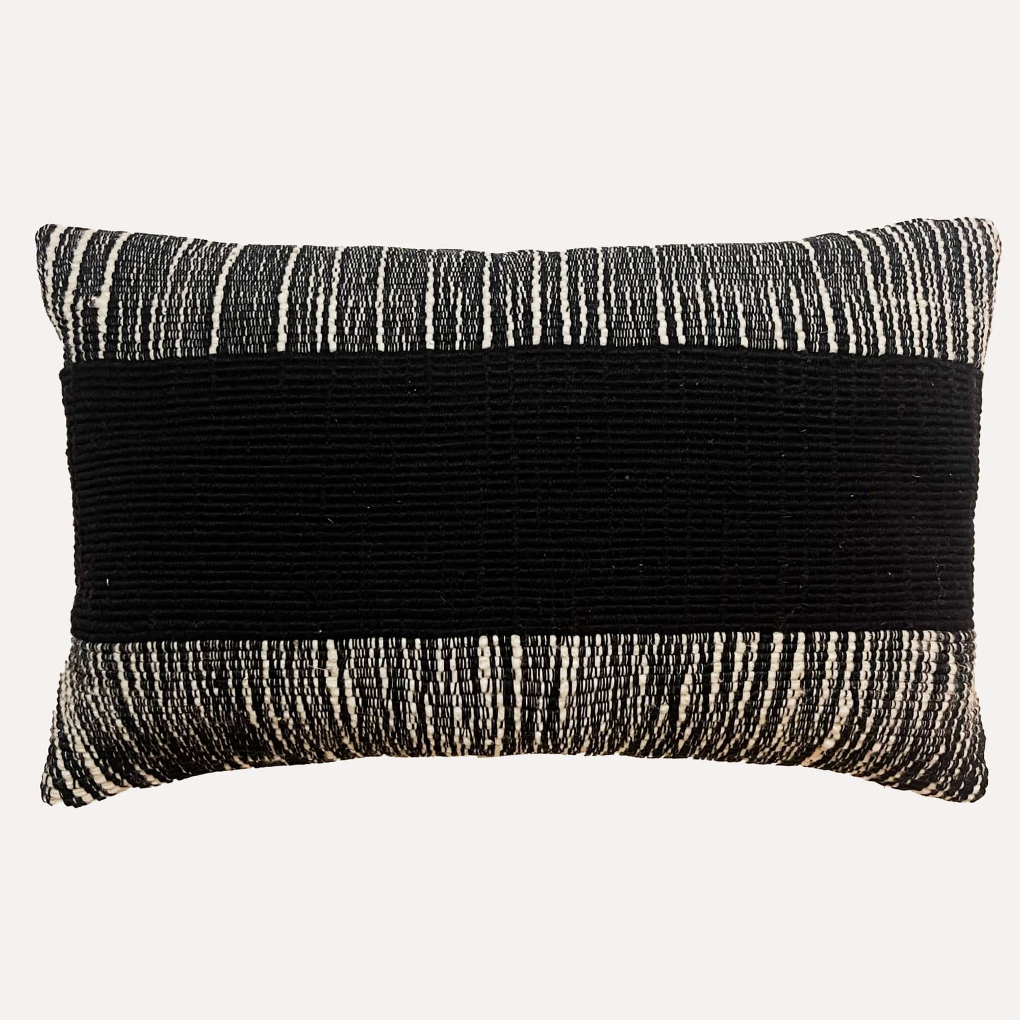 Handcrafted in CHENALHO, CHIAPAS using the traditional back-strap loom weave technique, this 12 X 20″ pillow cover, featuring black – light beige hues, takes approximately 21.5 hours to produce, preserving the rich cultural heritage of Chiapas while bringing texture and character to your home.