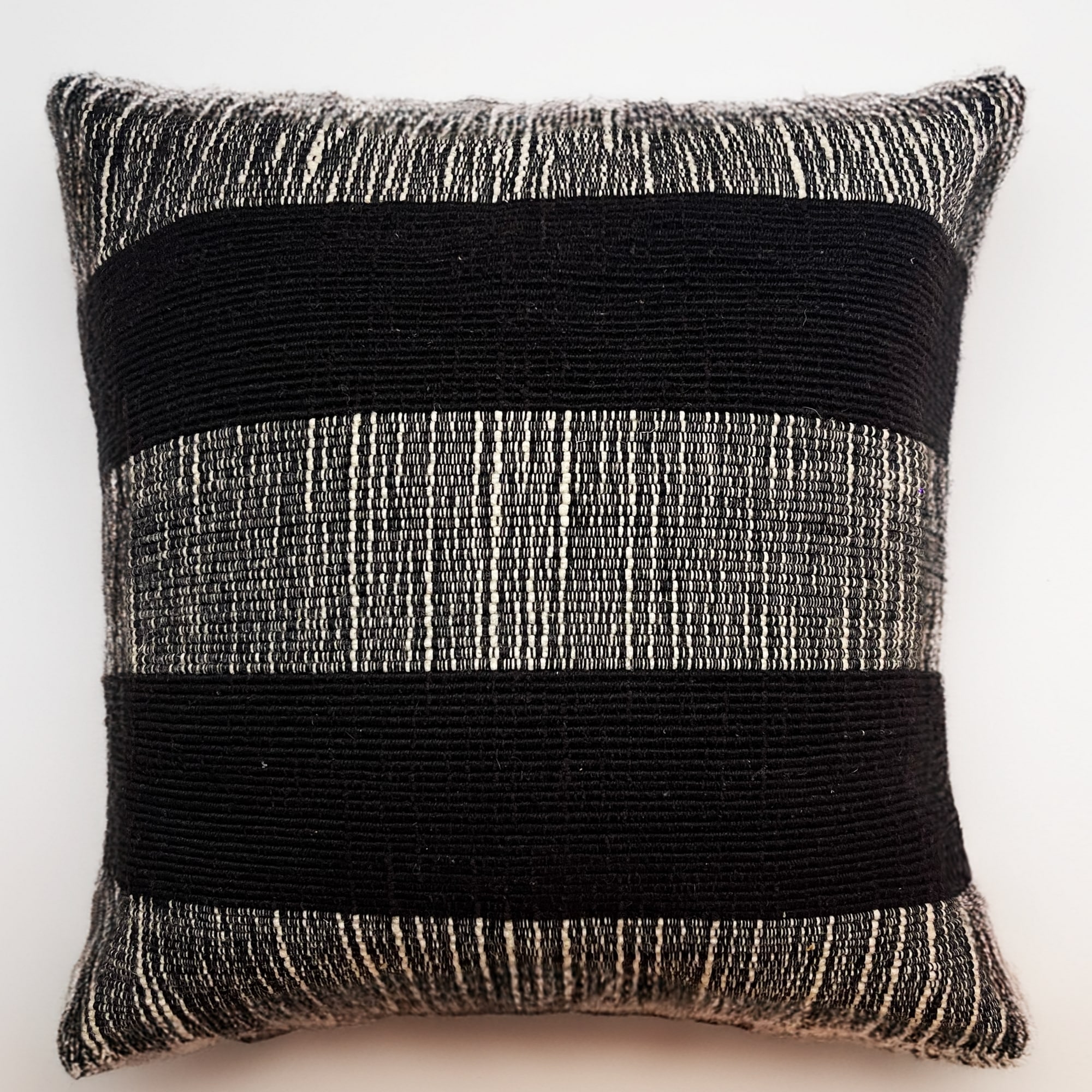 Handcrafted in CHENALHO, CHIAPAS using the traditional back-strap loom weave technique, this 20 X 20″ pillow cover, featuring black – light beige hues, takes approximately 21.5 hours to produce, preserving the rich cultural heritage of Chiapas while bringing texture and character to your home.