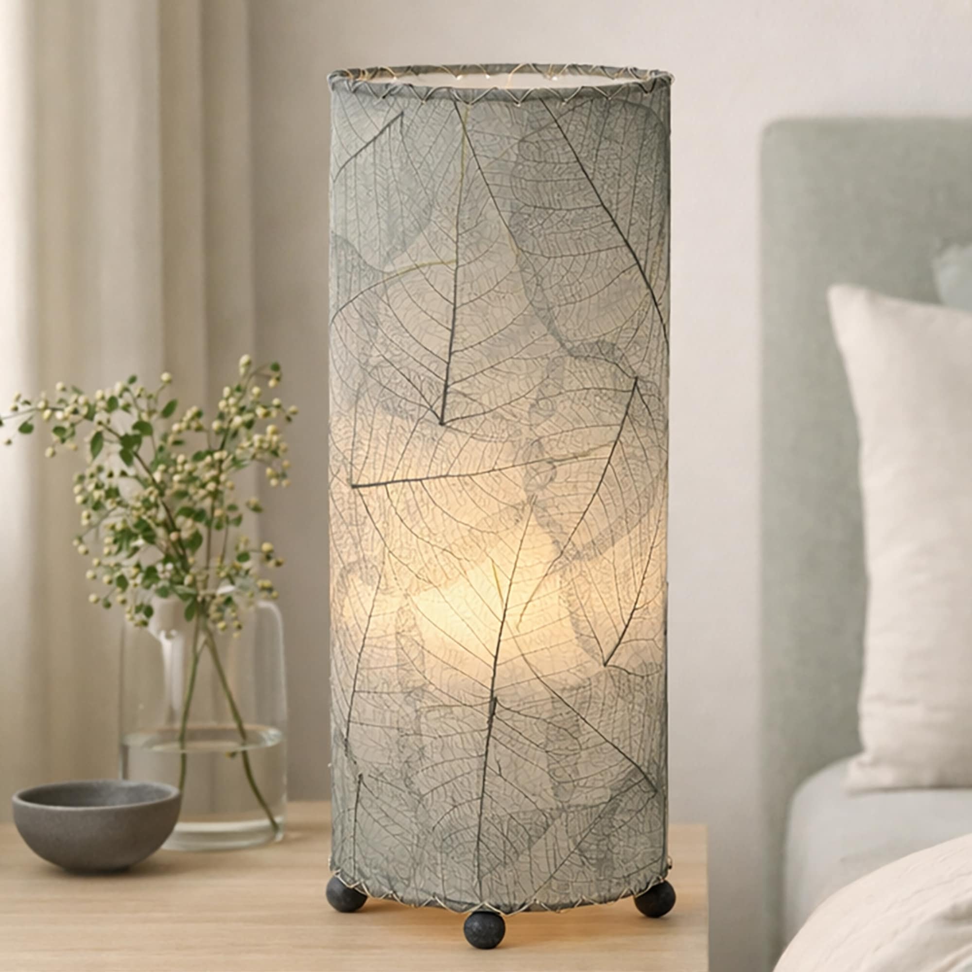 Lighting with soul. Our handcrafted table lamps blend natural materials and sculptural design to create a quiet glow that soothes and inspires. Each is made from real leaves, preserved and arranged by hand—no two are alike. Whether softening a nightstand or brightening a favorite nook, these lamps offer light with meaning. Small in size, big in feeling.